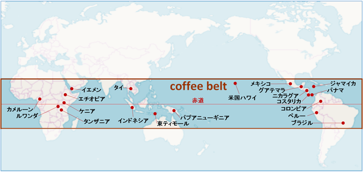 1、2位のブラジルとベトナムはの順位は変わりませんが、3位にインドネシア、コロンビアは4位になりました。コロンビアの生産量を大きく減らしました。価格高騰の原因ですね。昨年の6位のペルーは7位になり、ホンジュラスと順位が変わりました。1位ブラジルと2位ベトナムで、全世界の半分近く、上位6か国で実に全世界の7割を生産しています。珈琲発祥の地とされるアフリカのエチオピアが昨年同様5位になっていますが、エチオピアも生産量を減らしました。2位のベトナムは、ロブスタ種の生産世界1位です。